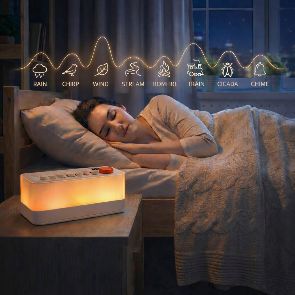 This layered “sound curtain” helps mask sudden distractions so your brain can downshift into a calmer bedtime state.